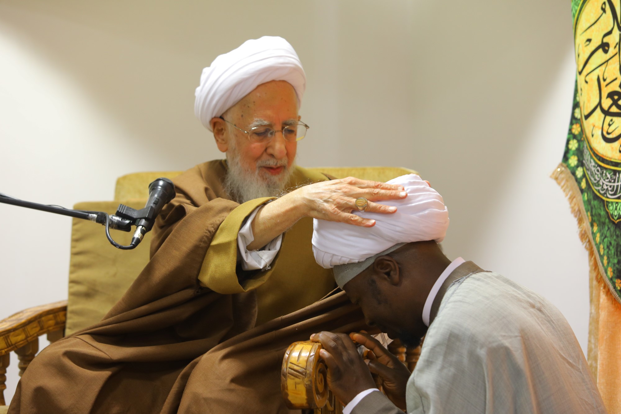مراسم عمامه گذاری جمعی از طلاب توسط آیت الله العظمی جوادی آملی در سالروز 17 ربیع الاول