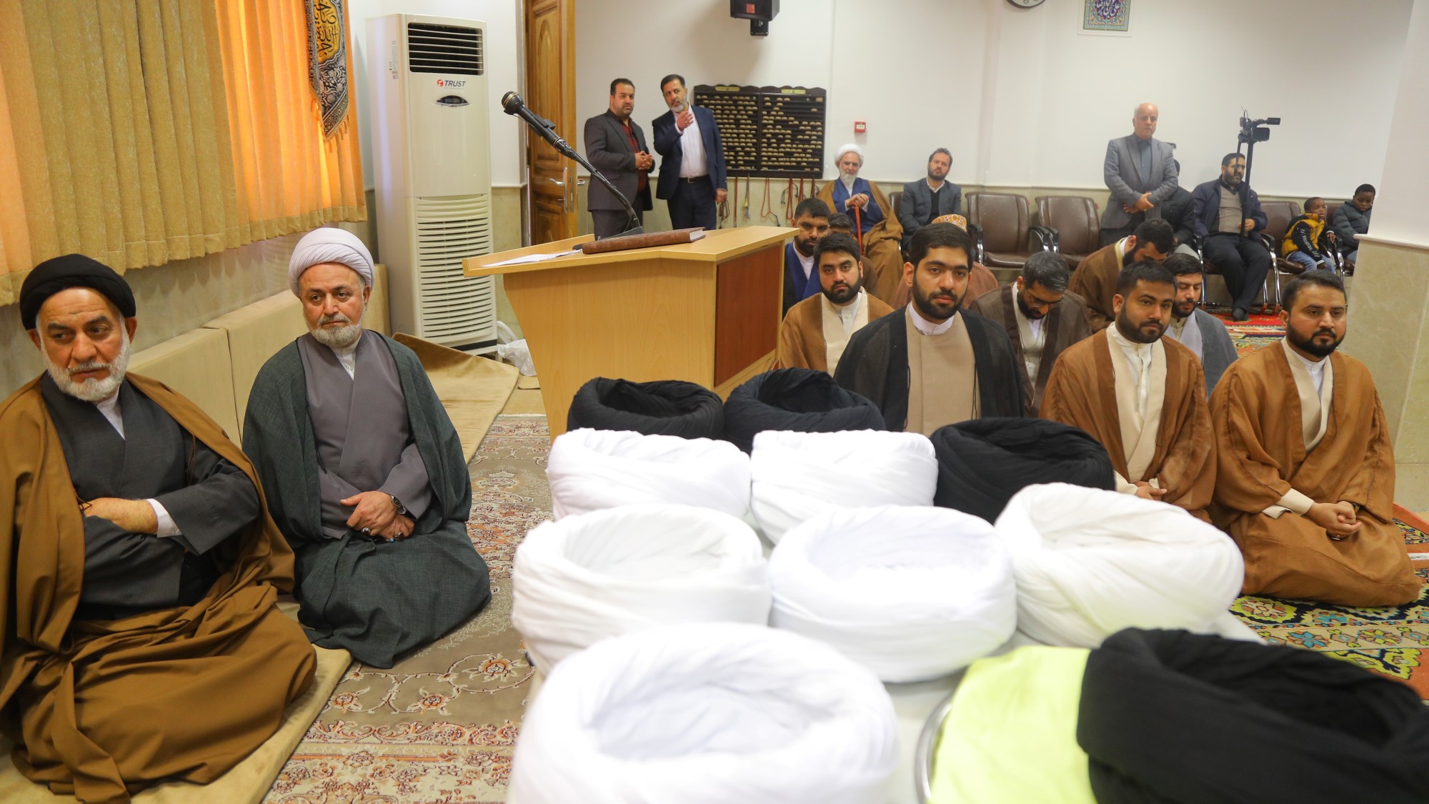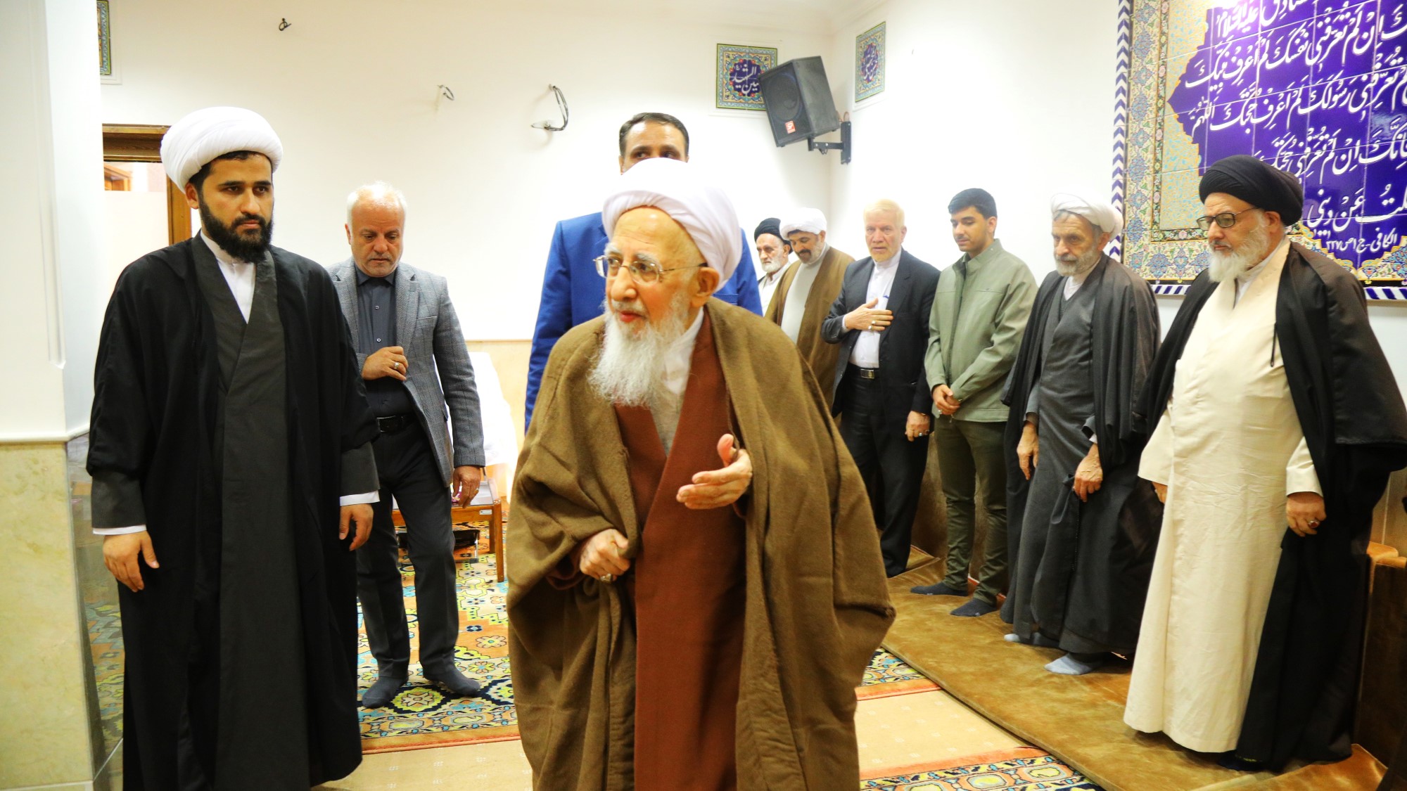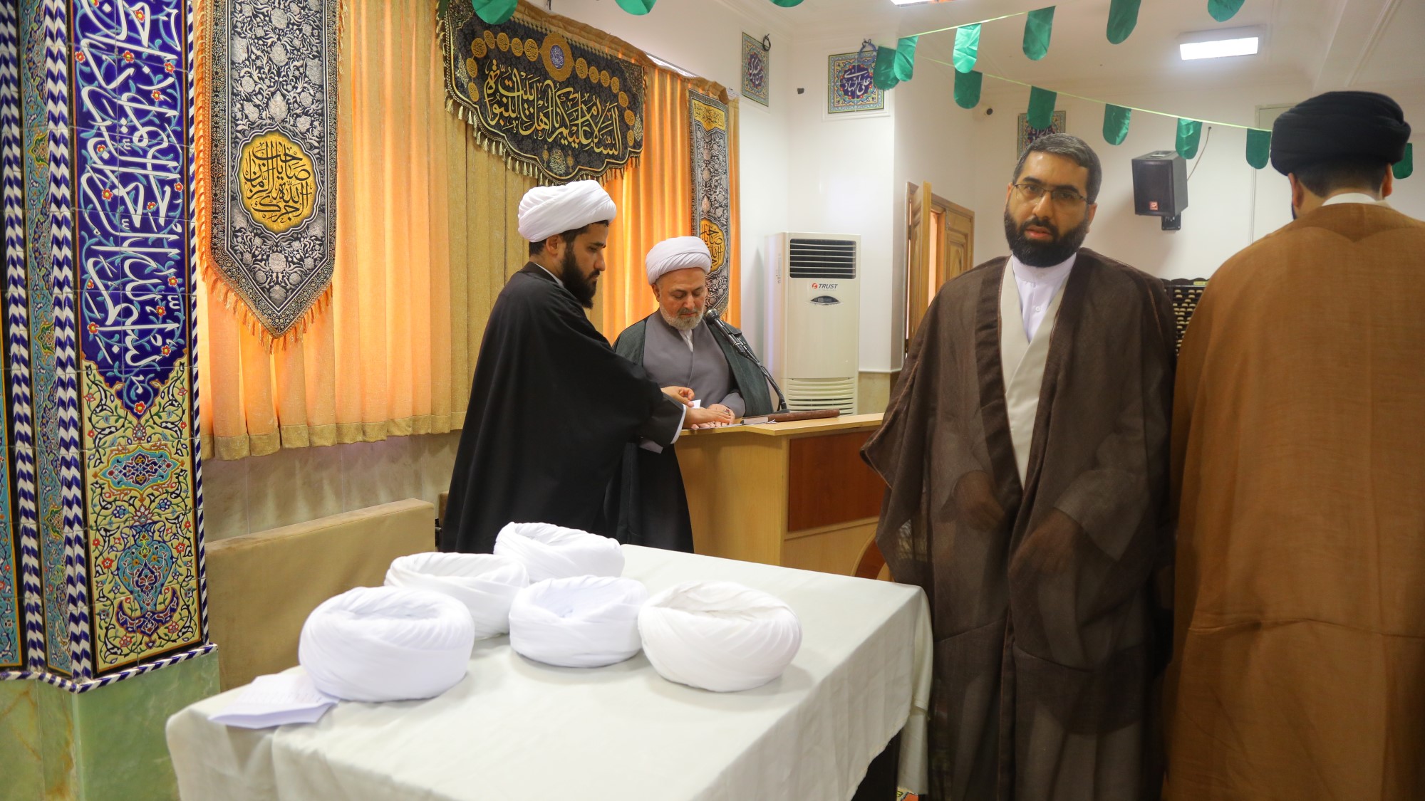مراسم عمامه گذاری جمعی از طلاب توسط آیت الله العظمی جوادی آملی در سالروز 13 رجب
