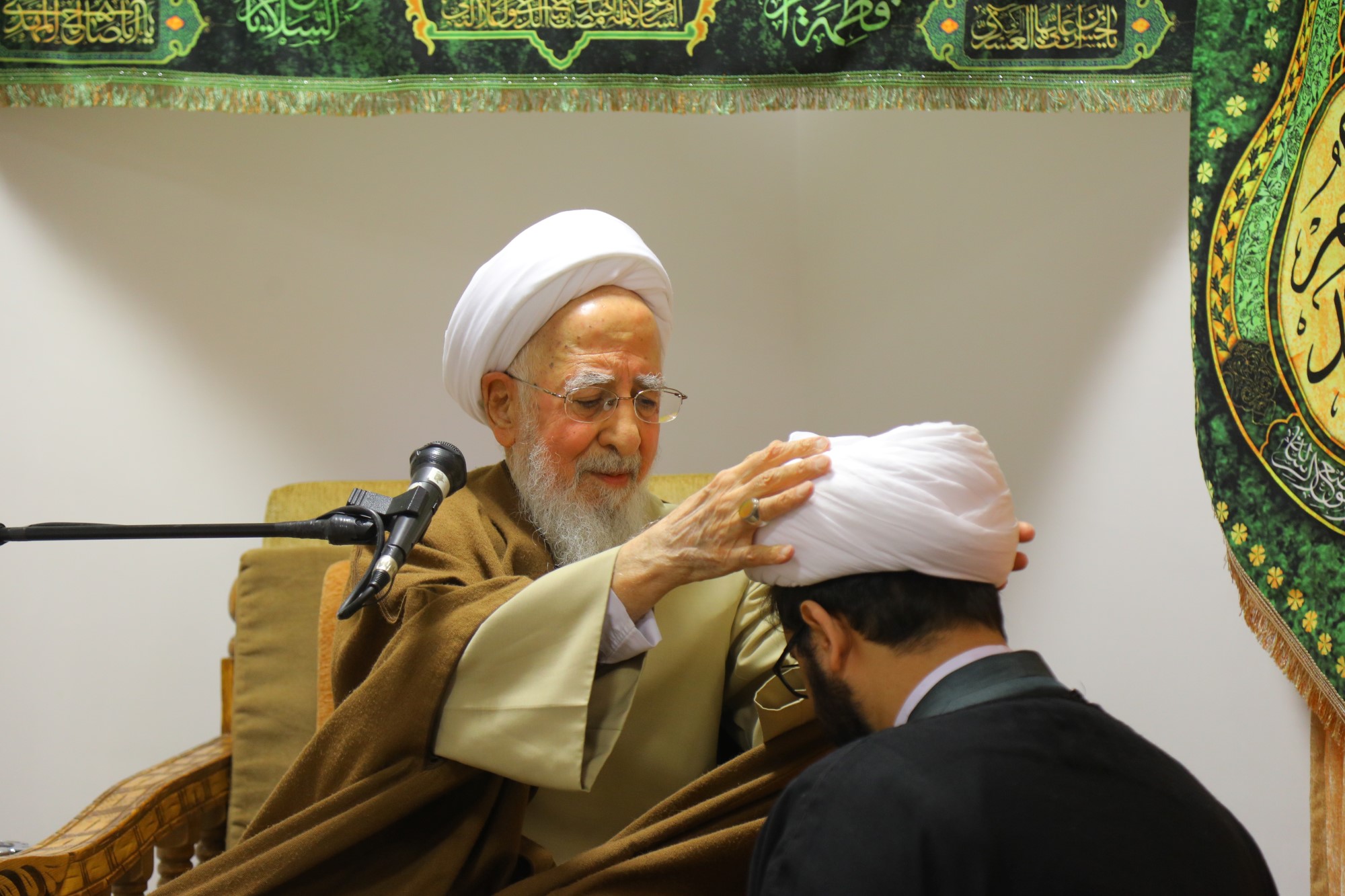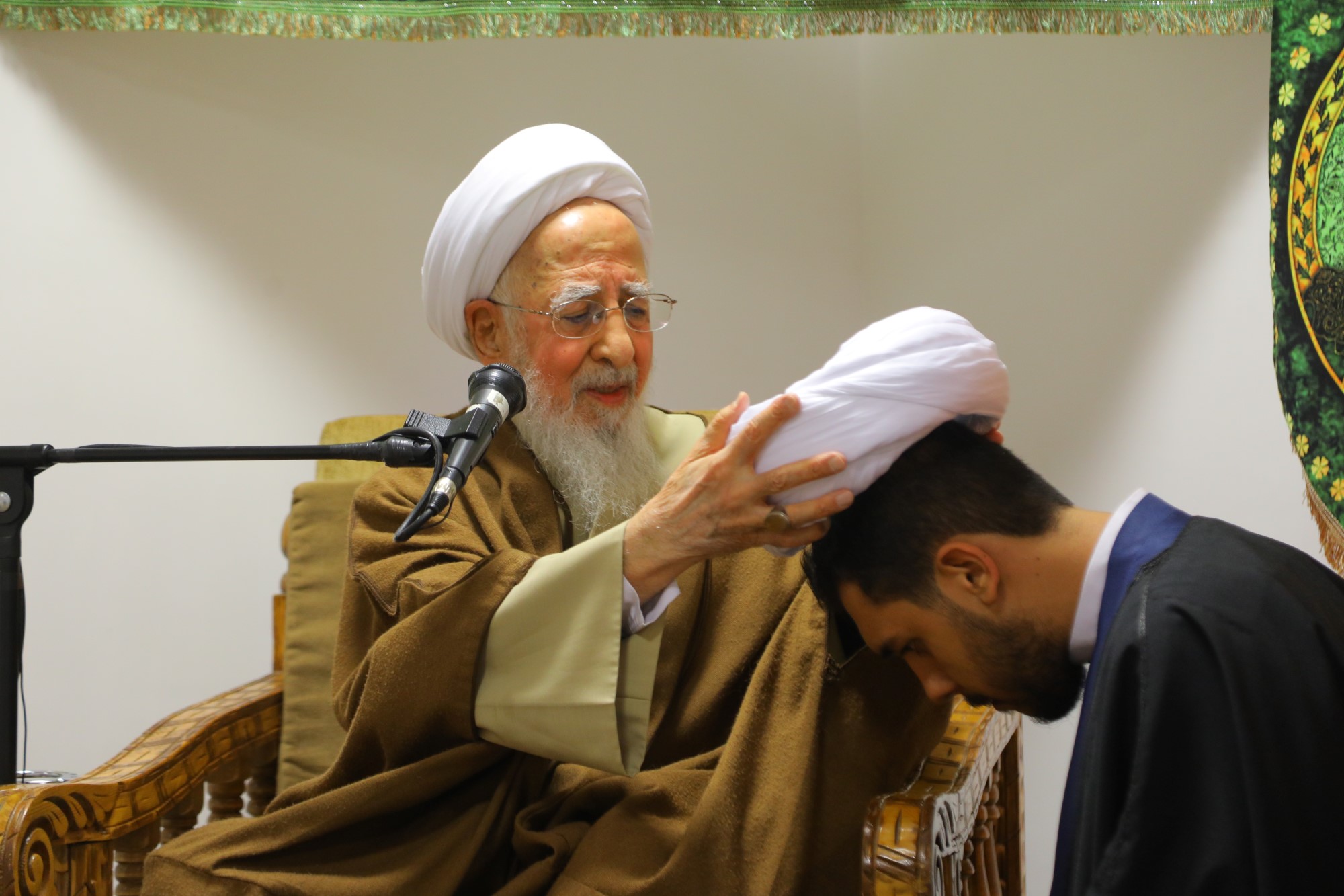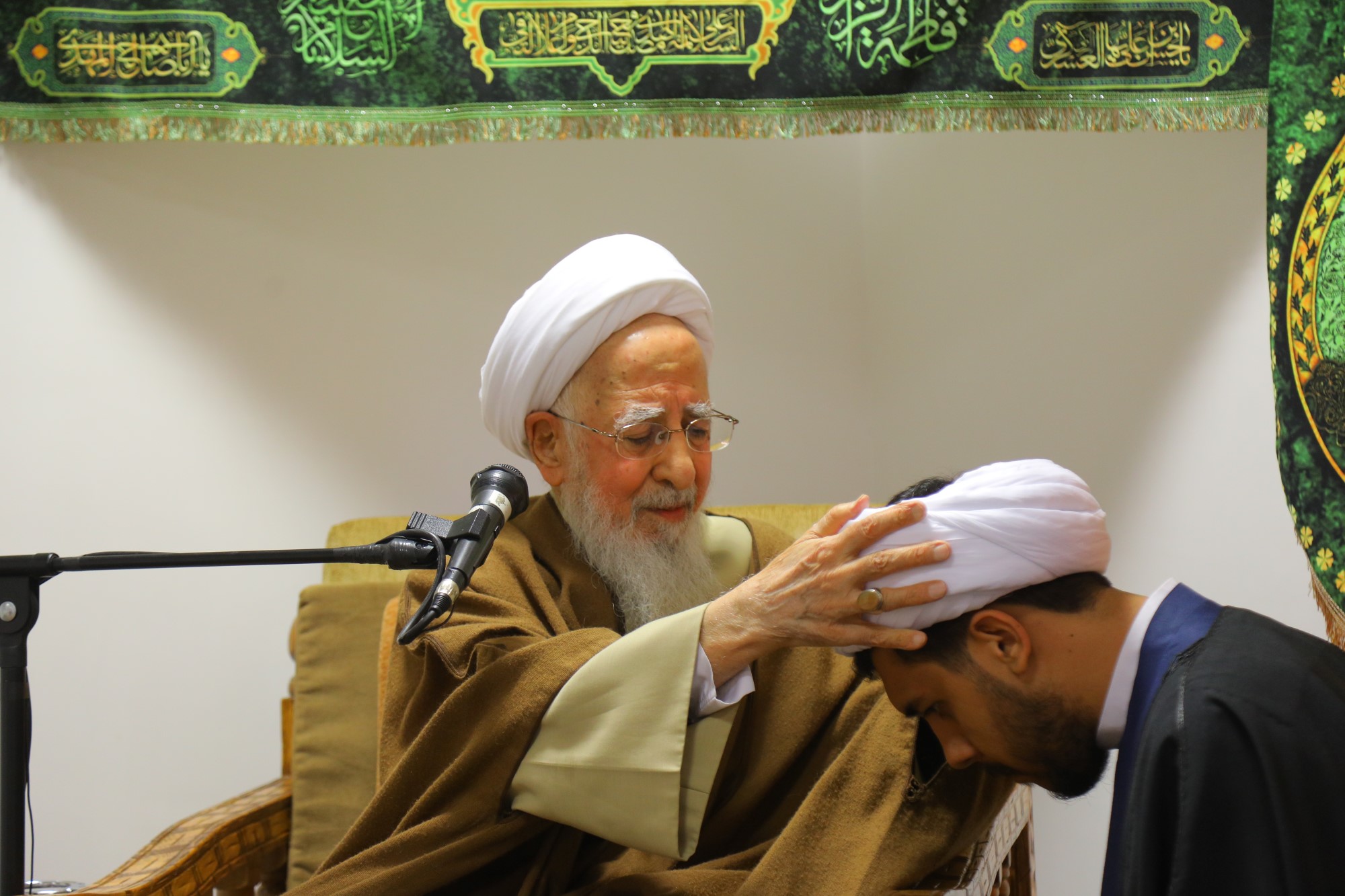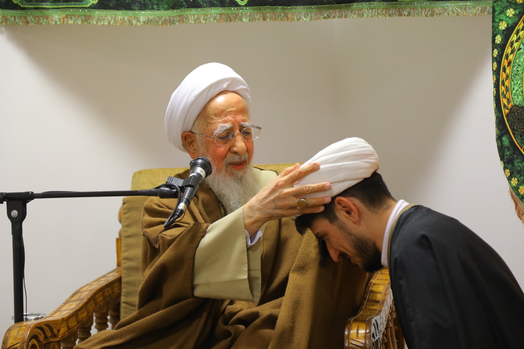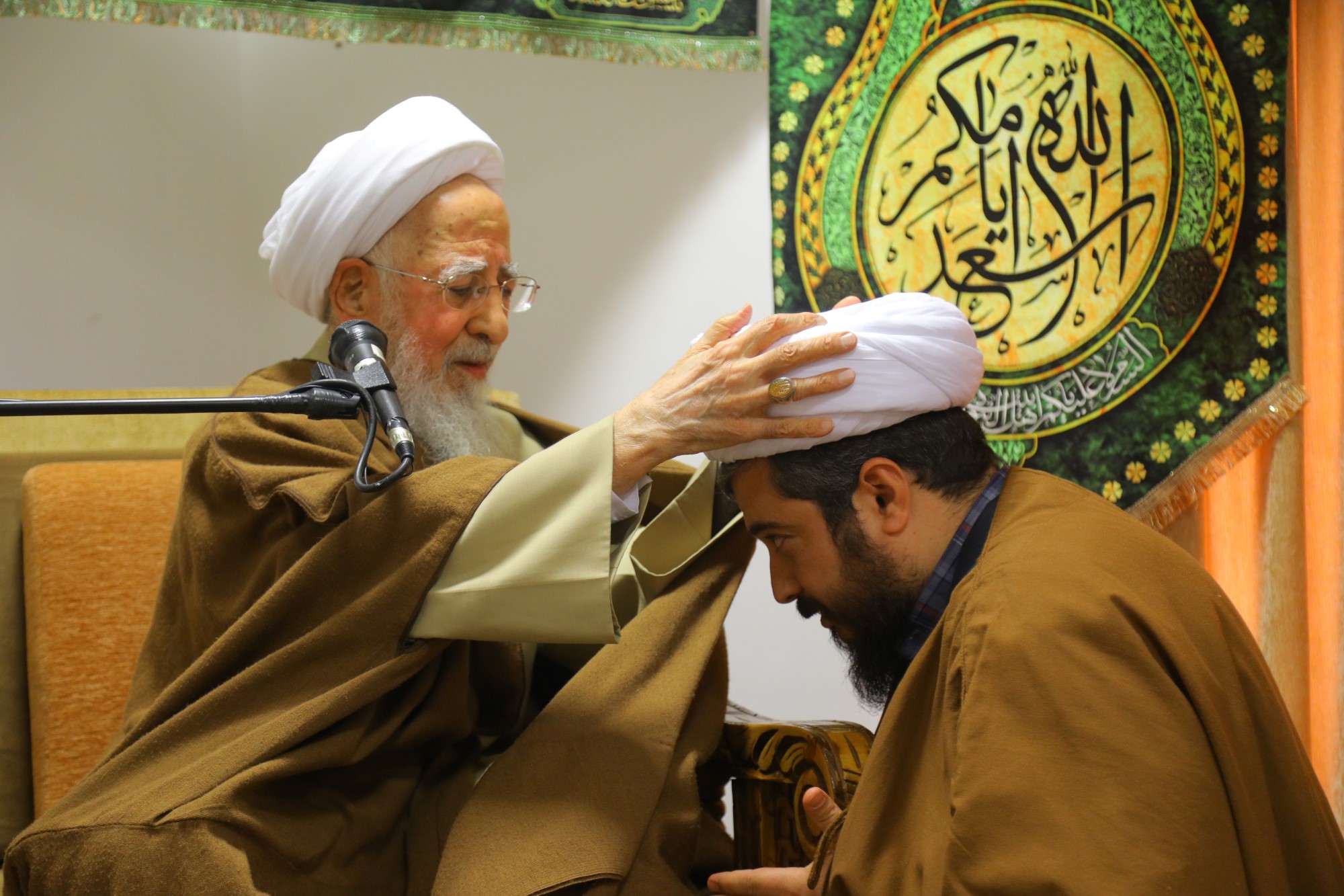 مراسم عمامه گذاری جمعی از طلاب توسط آیت الله العظمی جوادی آملی در نیمه شعبان