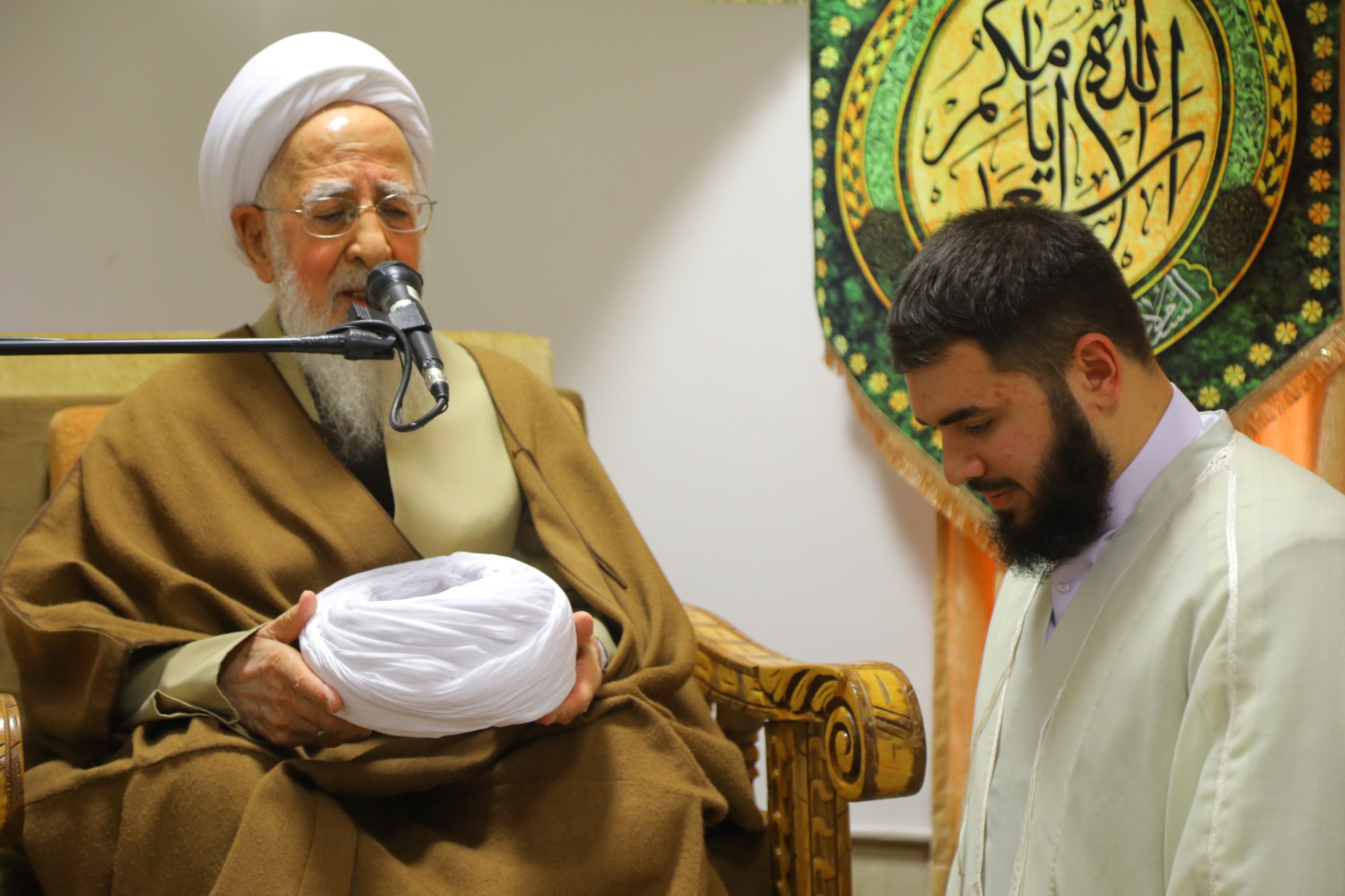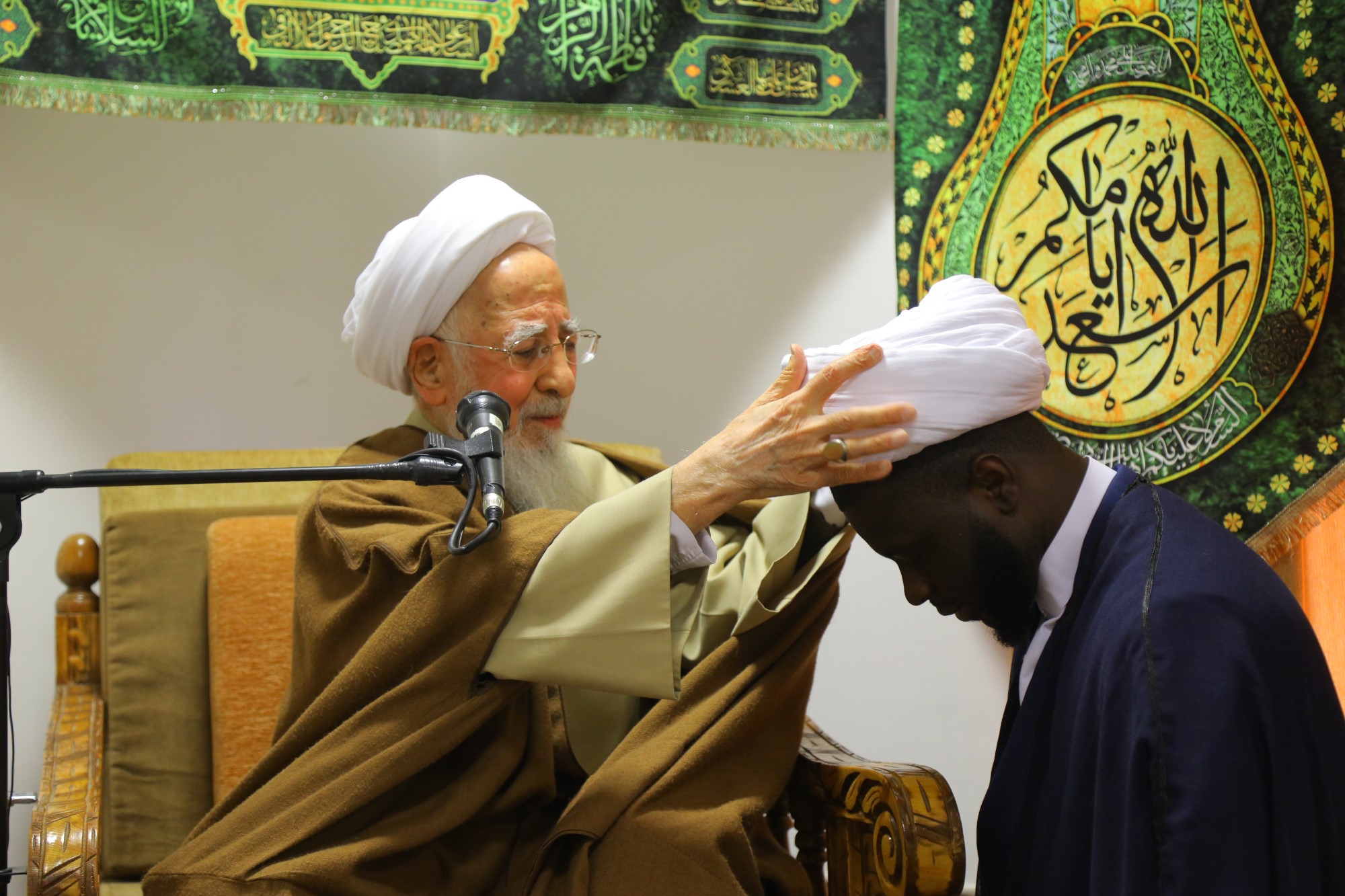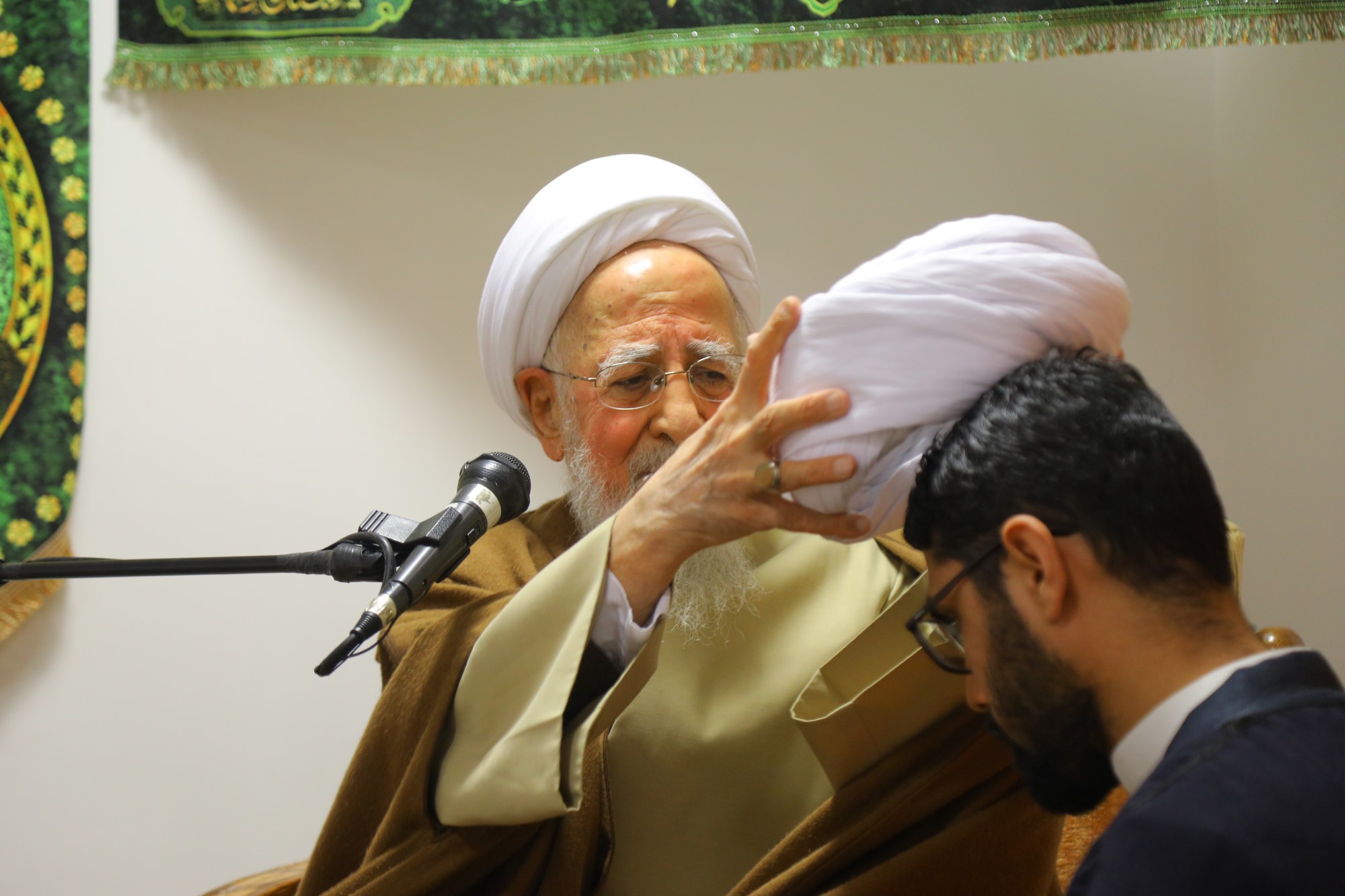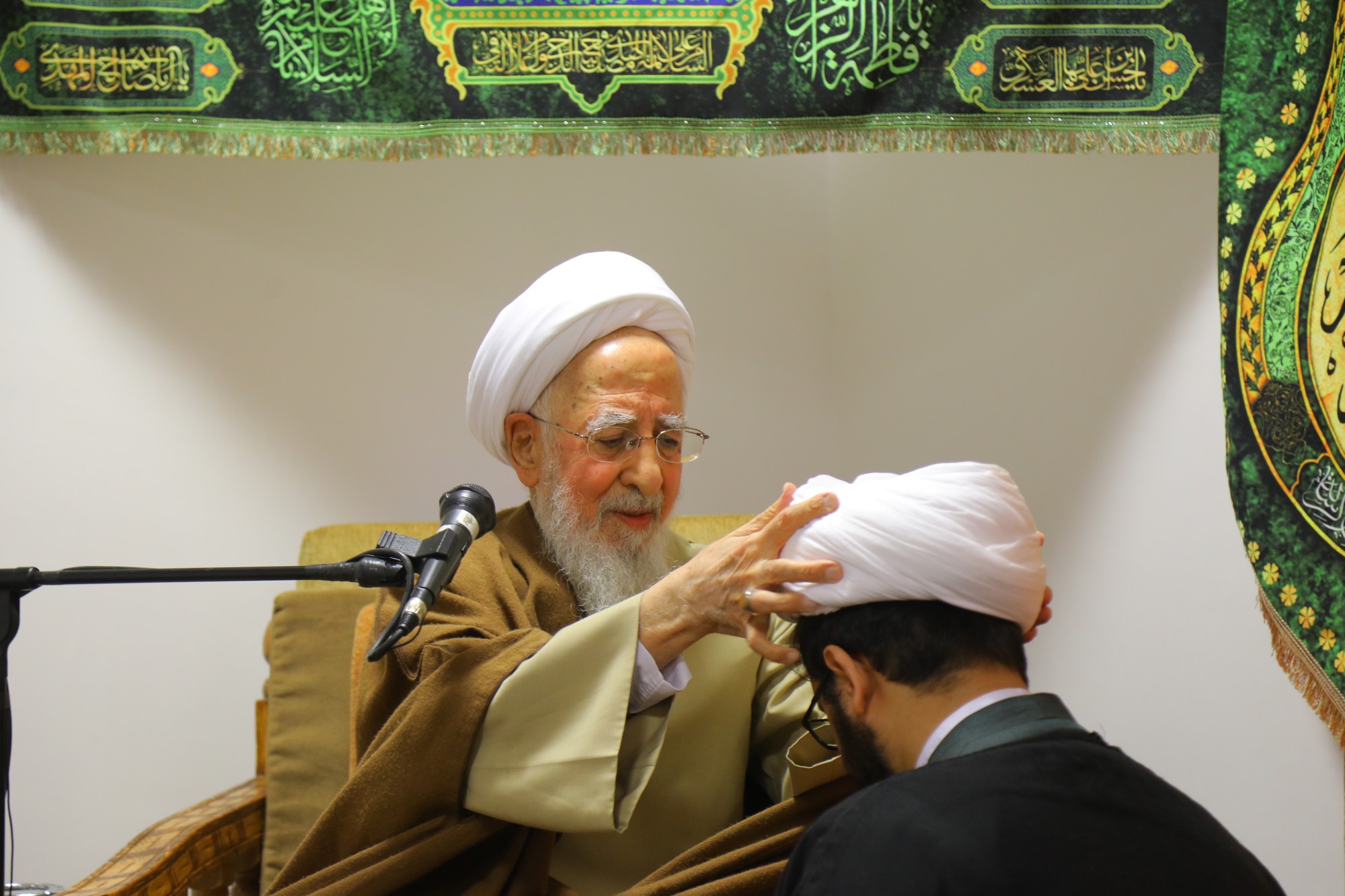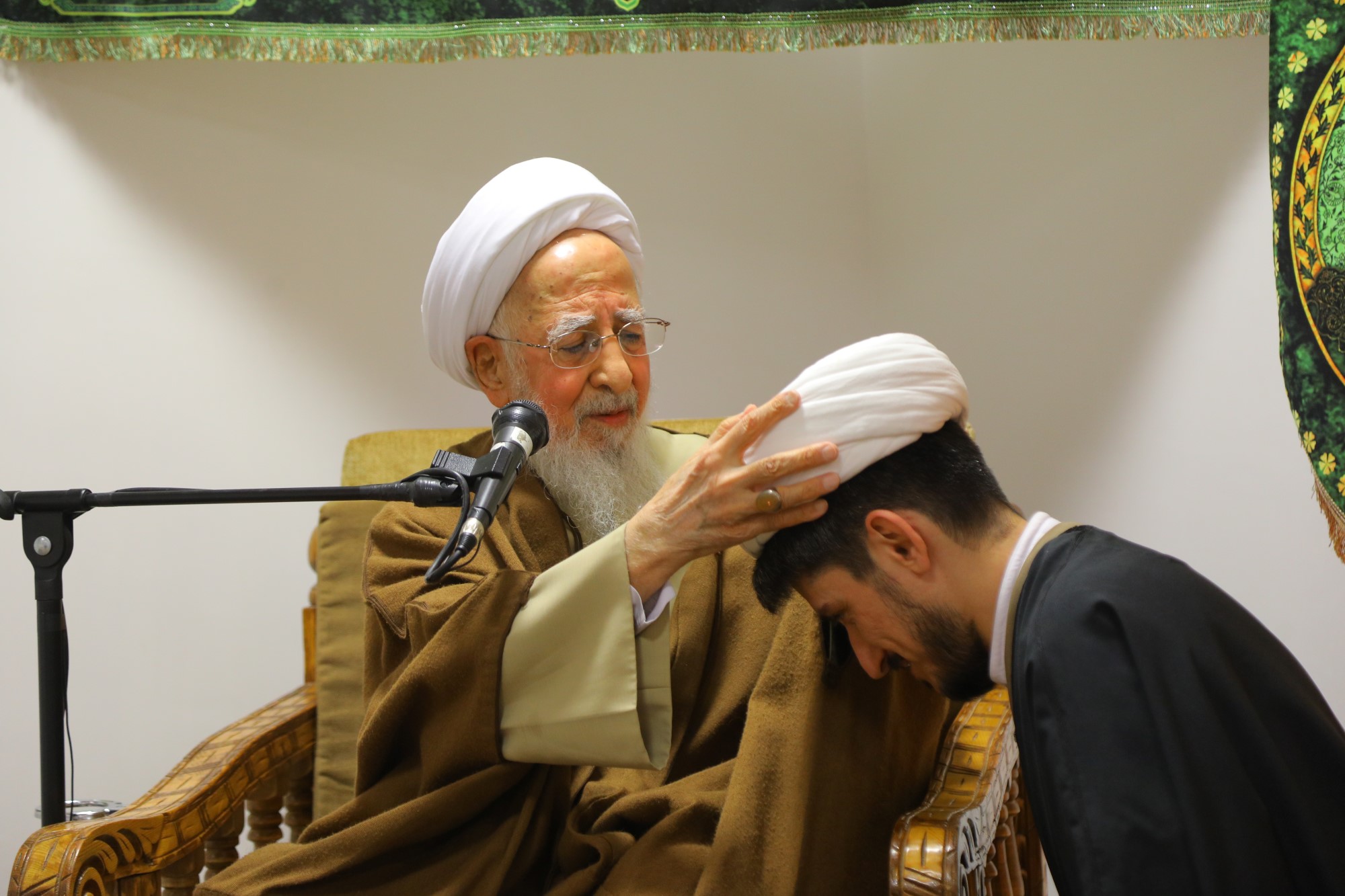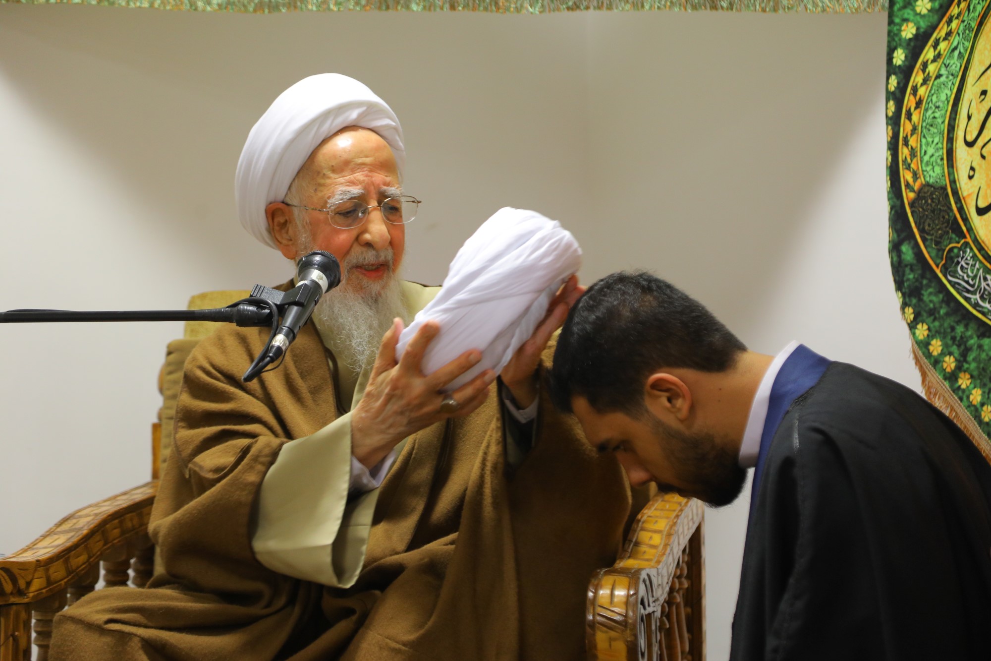 مراسم عمامه گذاری جمعی از طلاب توسط آیت الله العظمی جوادی آملی در نیمه شعبان