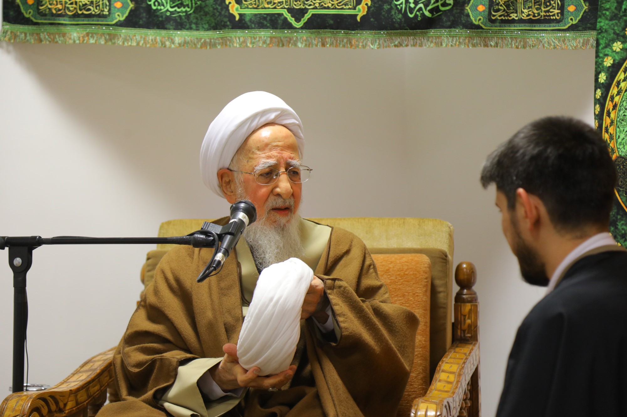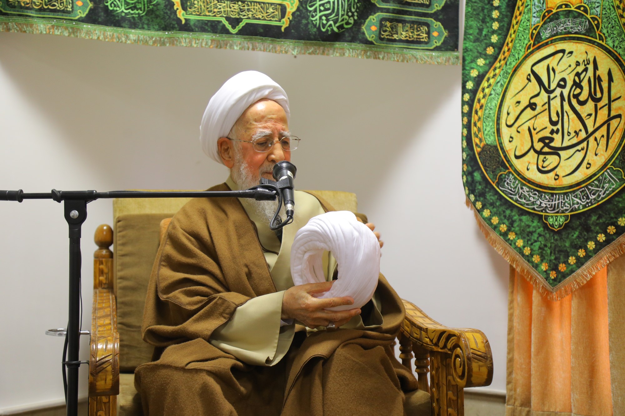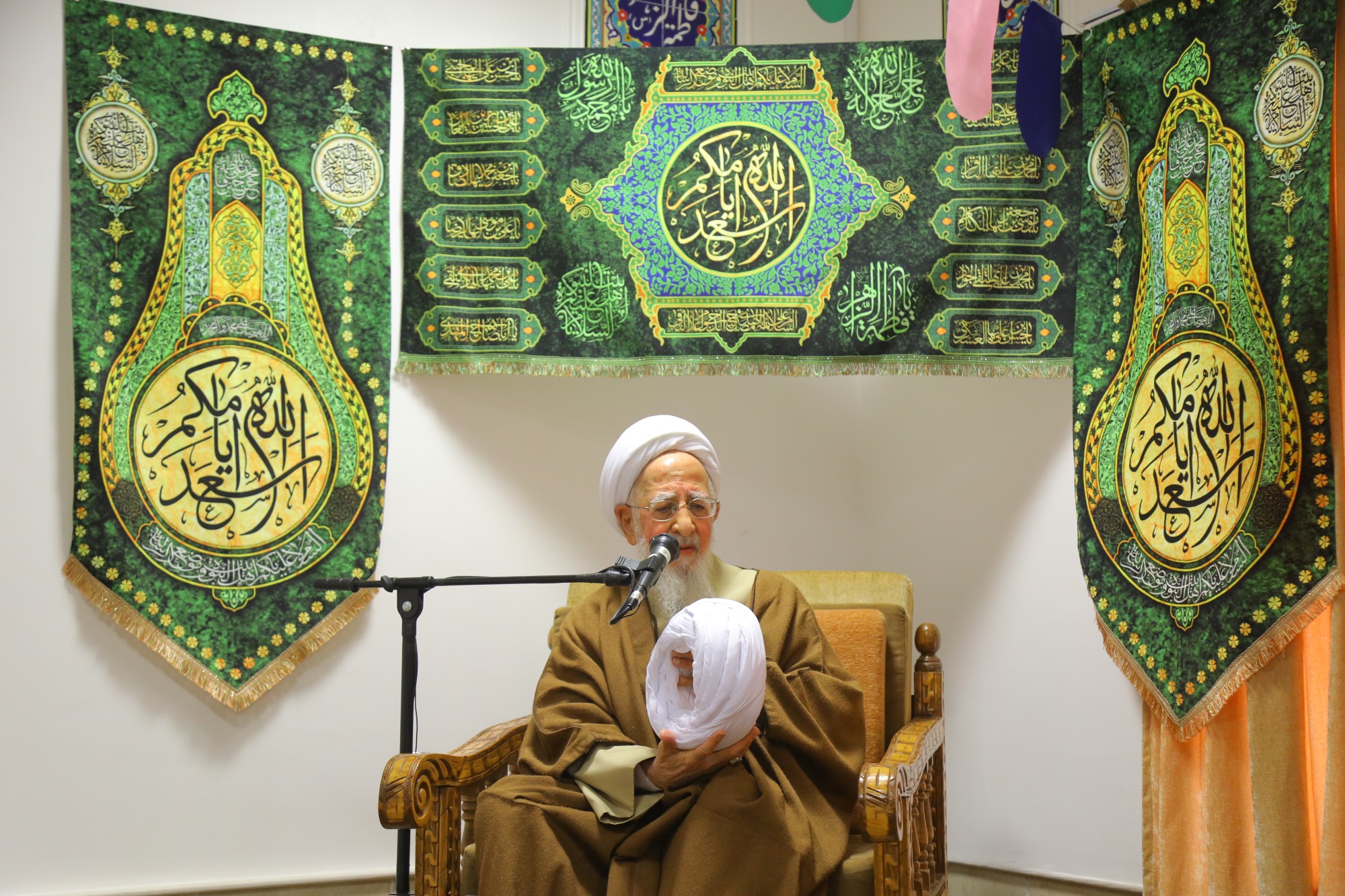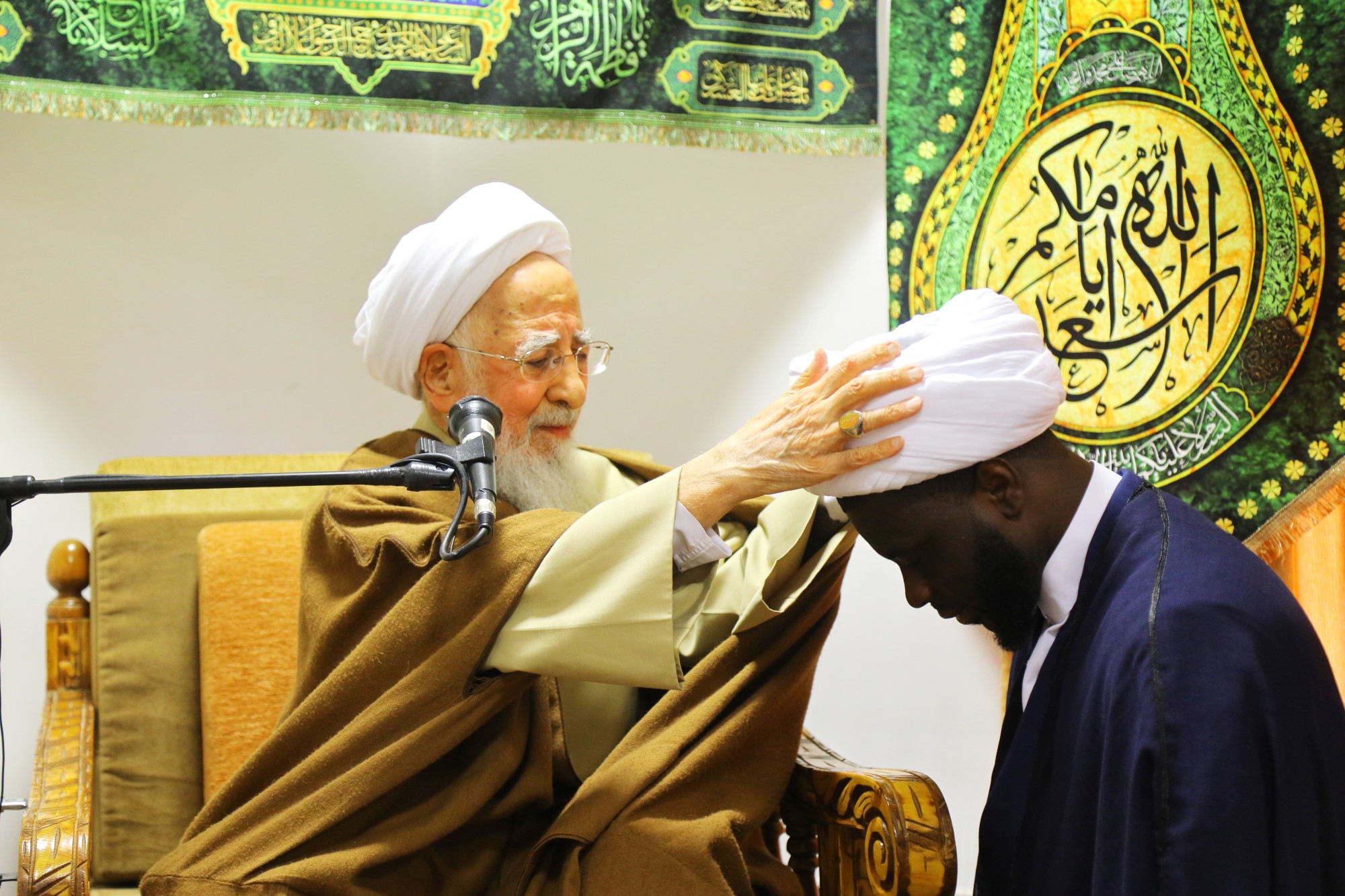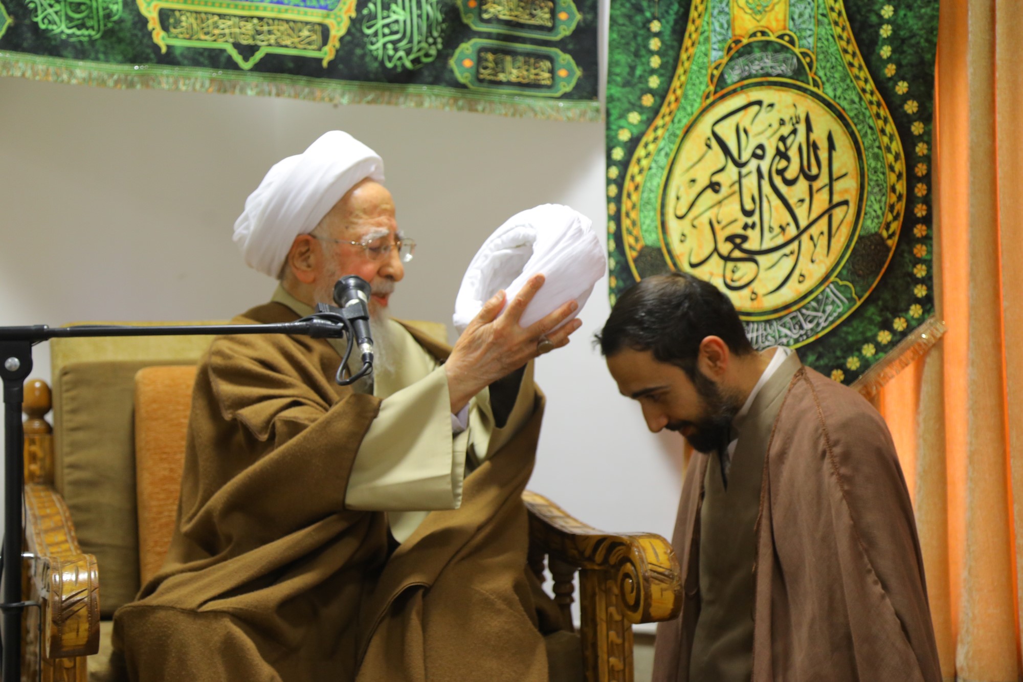 مراسم عمامه گذاری جمعی از طلاب توسط آیت الله العظمی جوادی آملی در نیمه شعبان