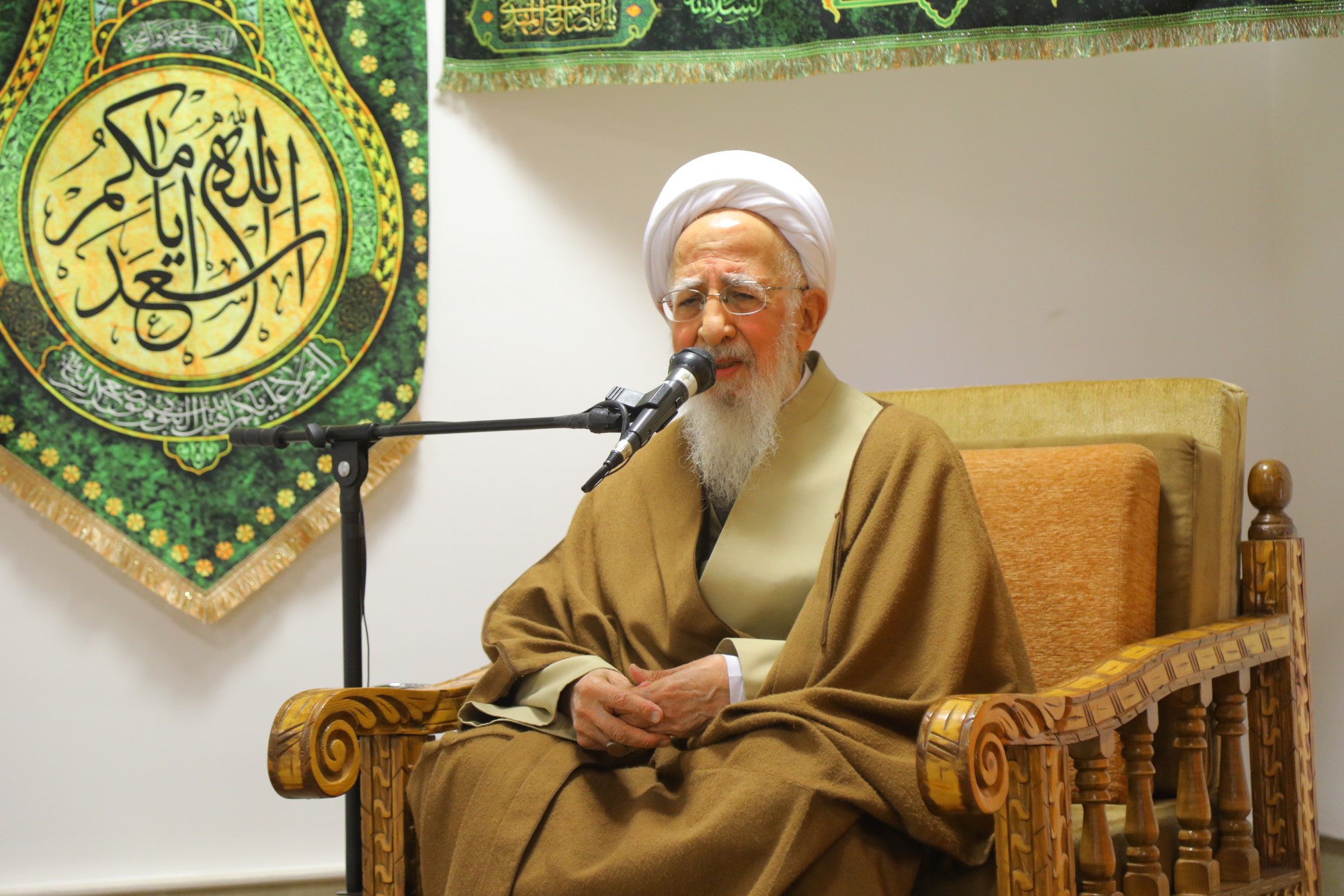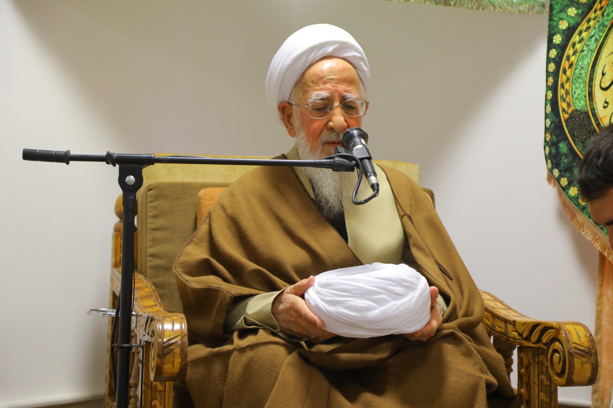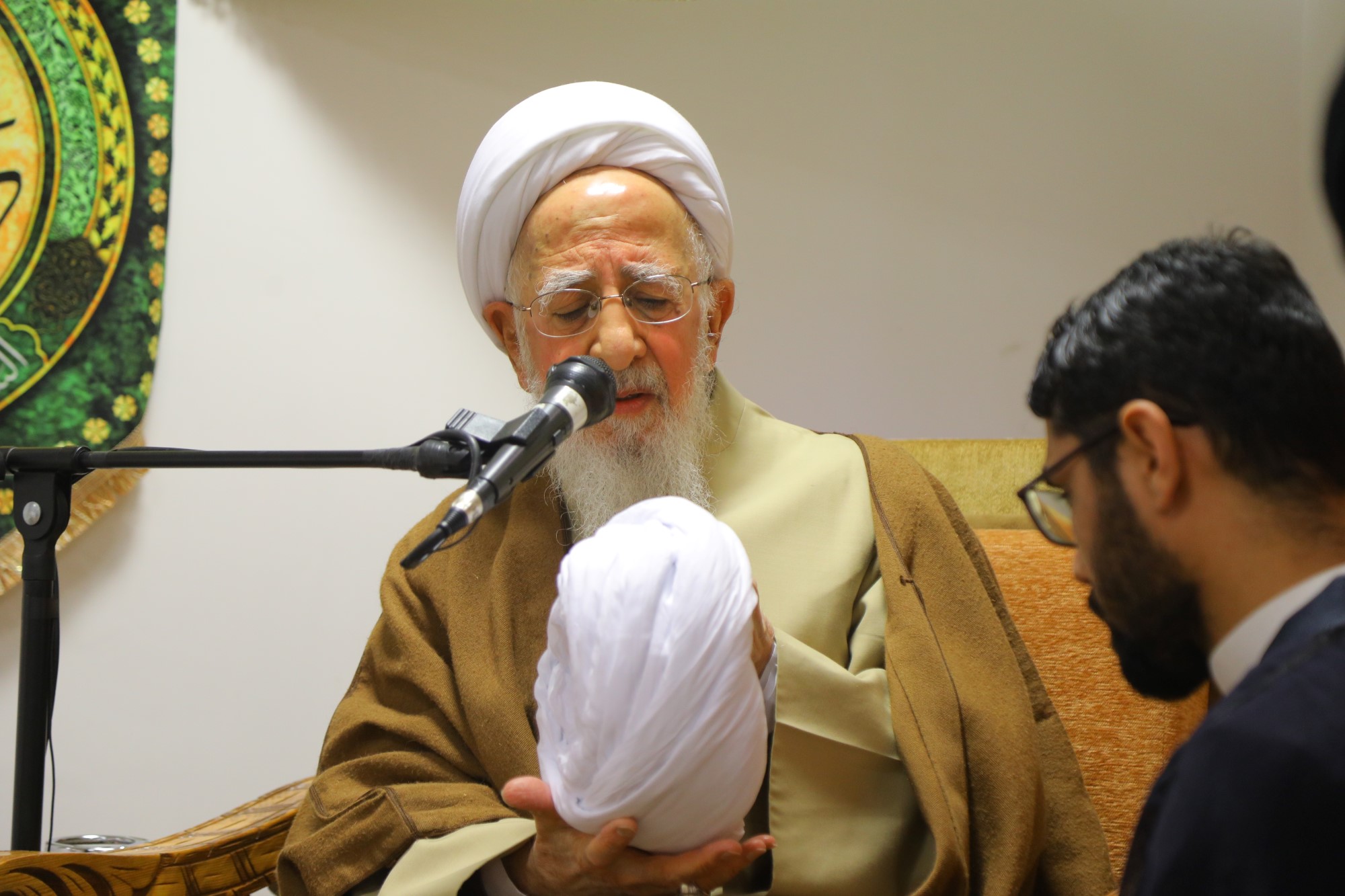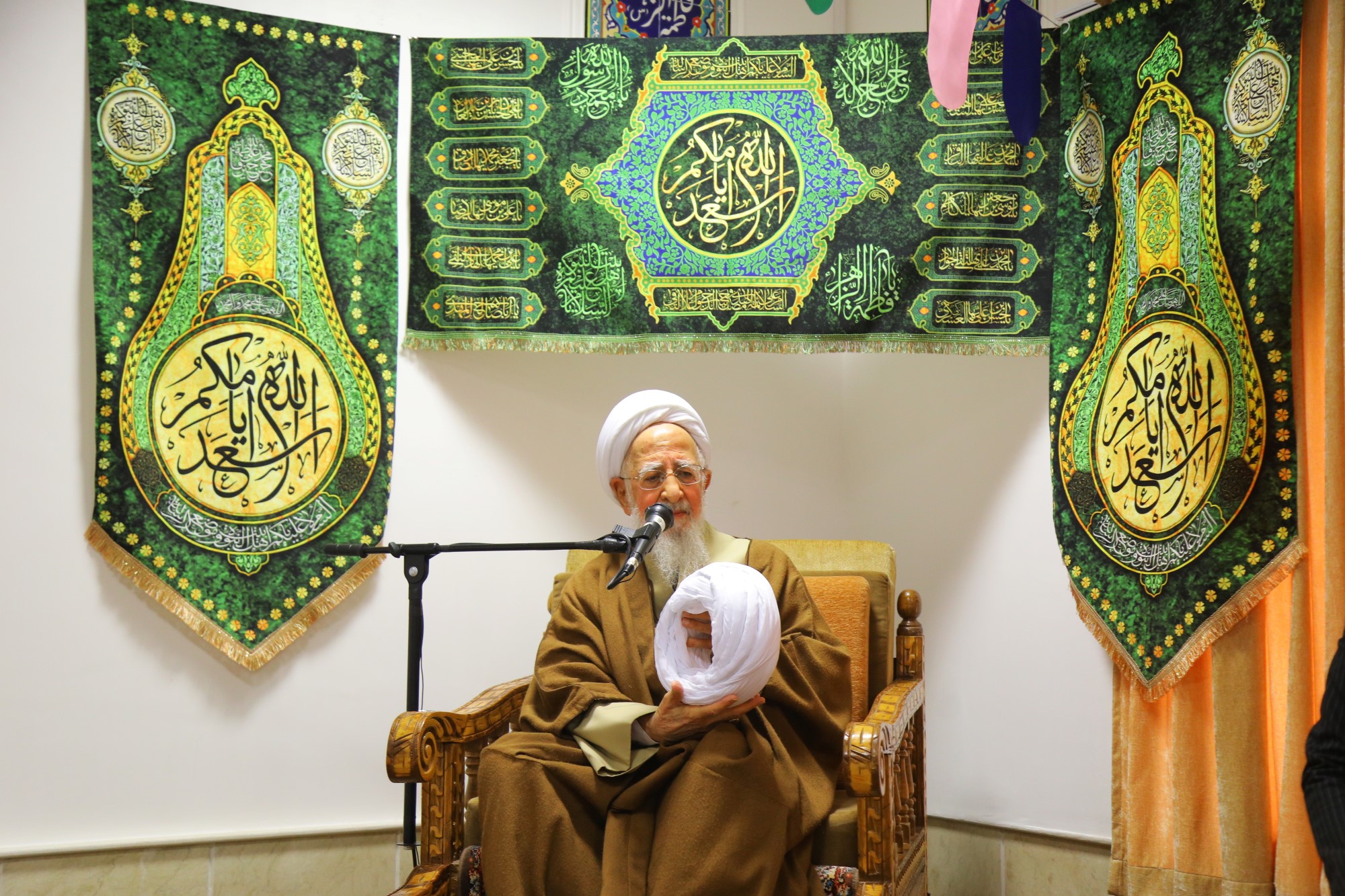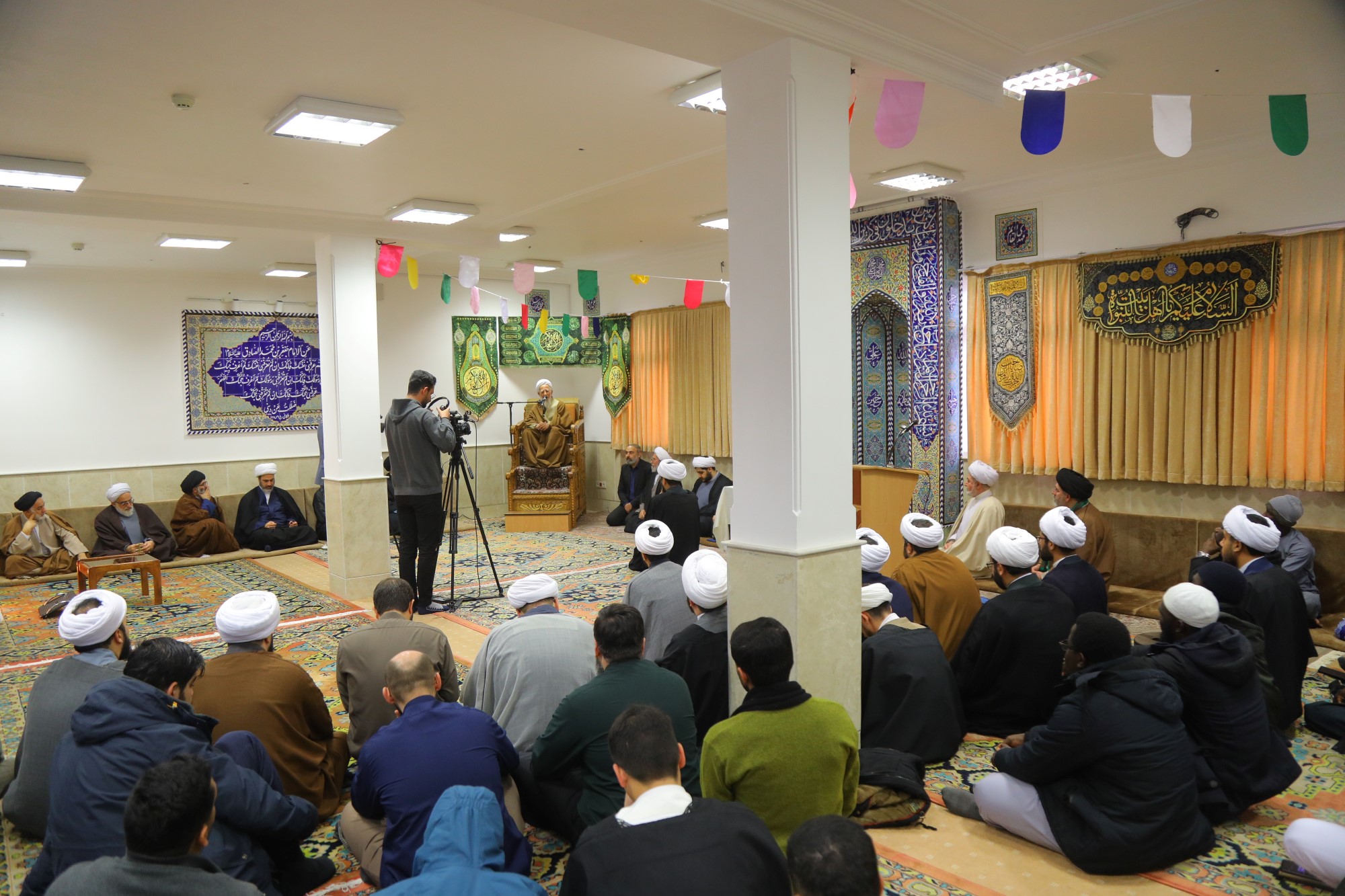 مراسم عمامه گذاری جمعی از طلاب توسط آیت الله العظمی جوادی آملی در نیمه شعبان