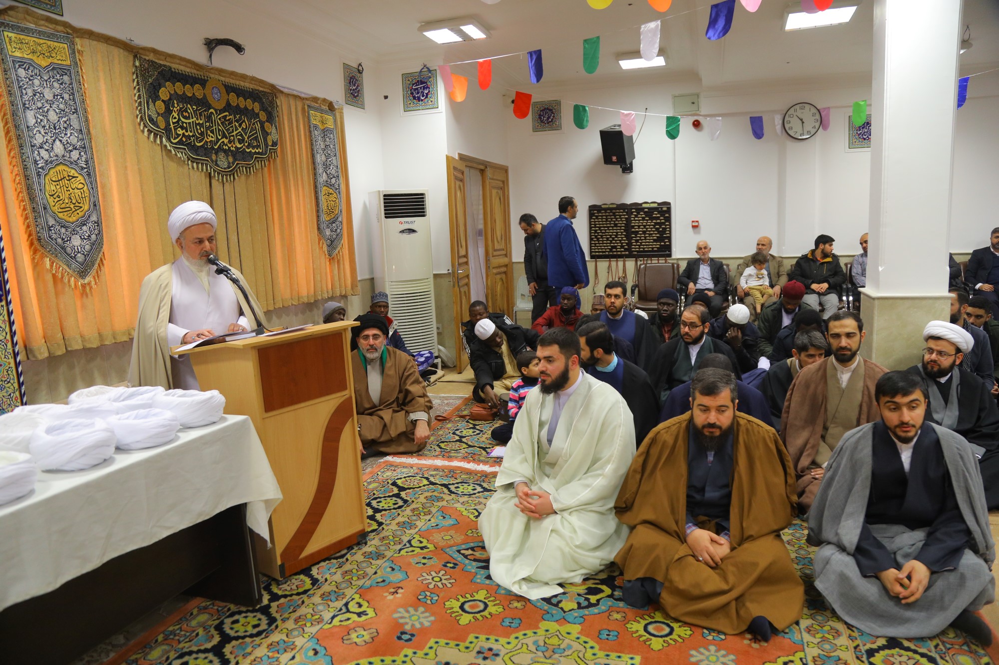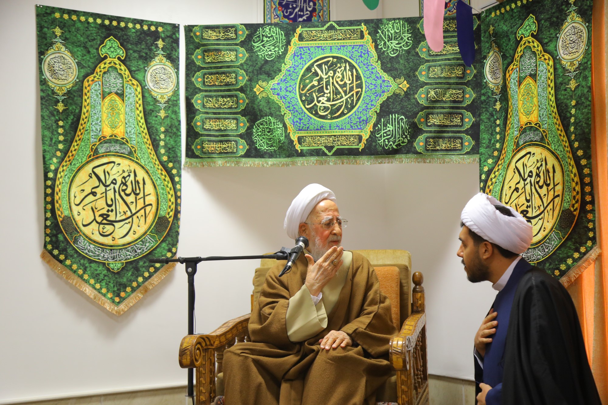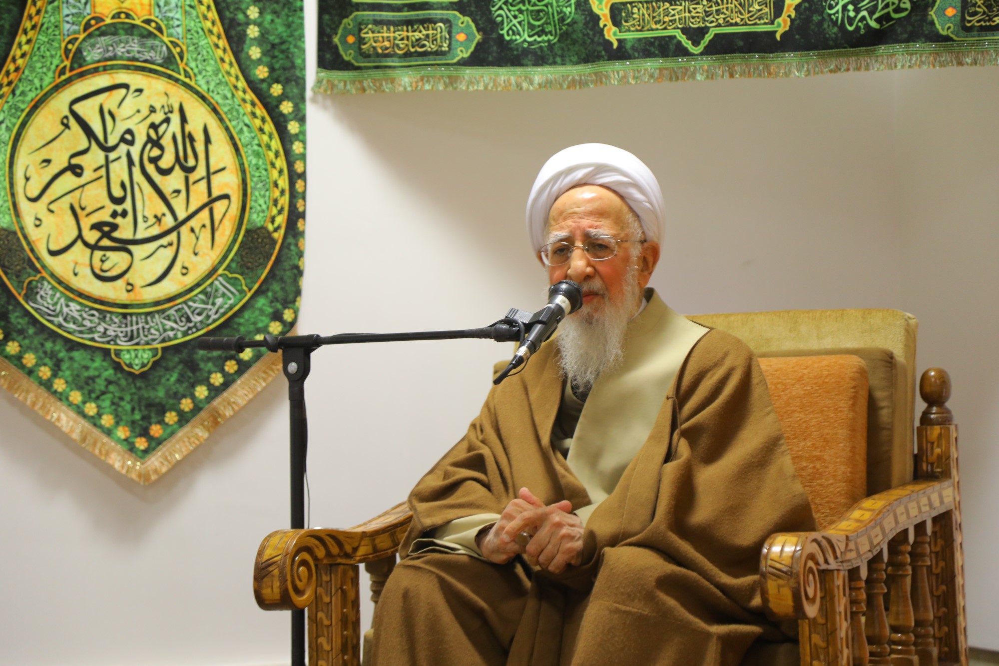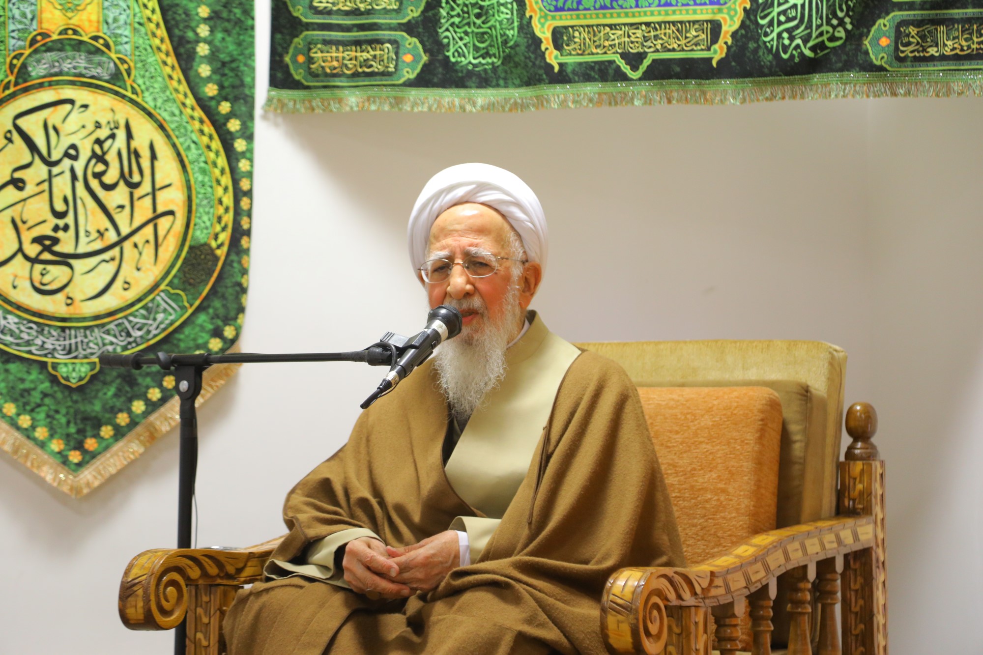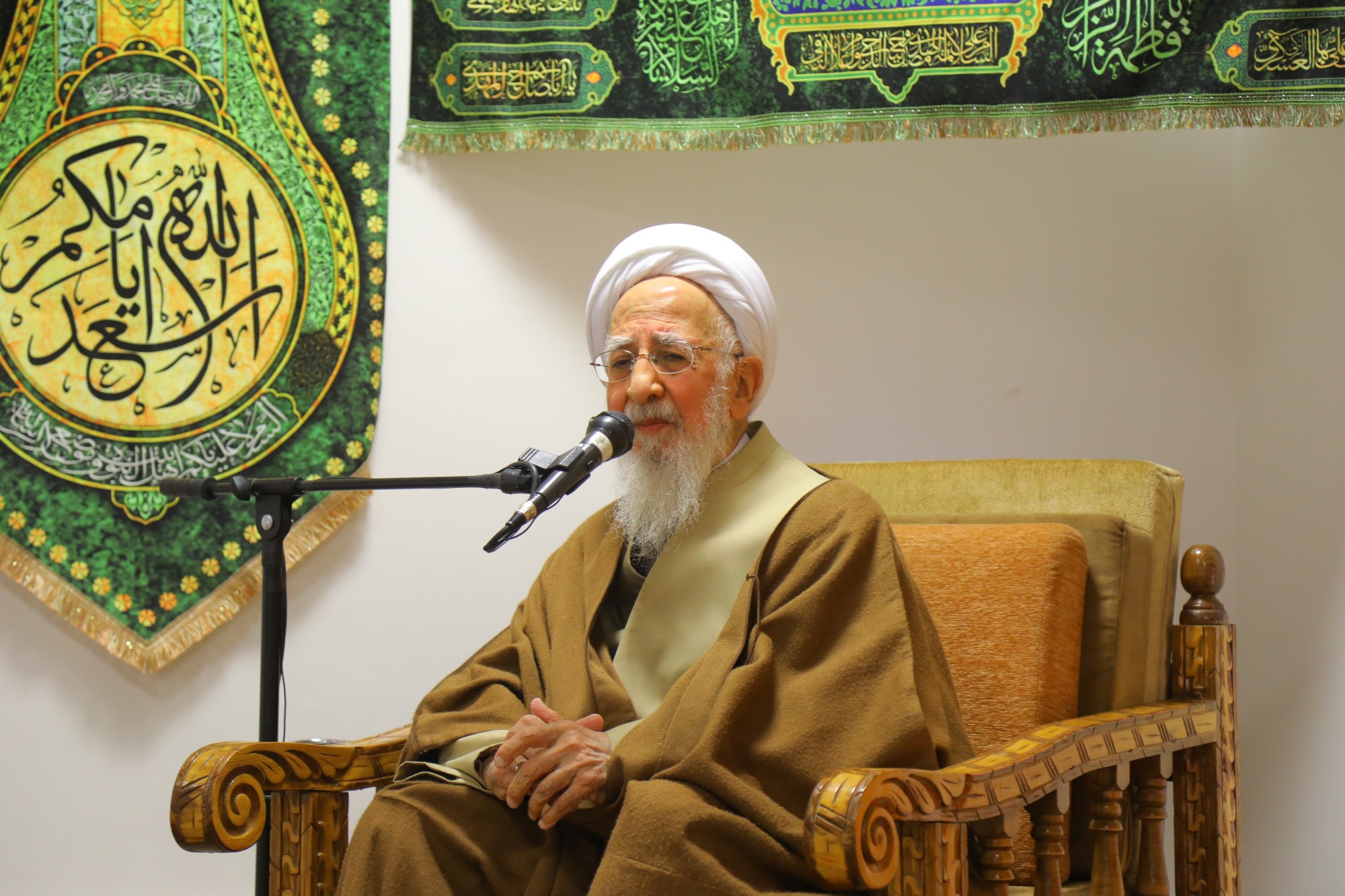 مراسم عمامه گذاری جمعی از طلاب توسط آیت الله العظمی جوادی آملی در نیمه شعبان