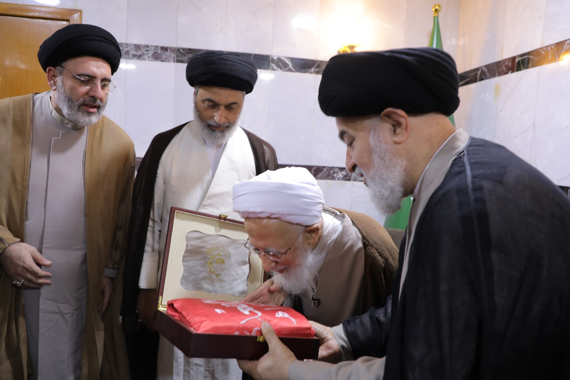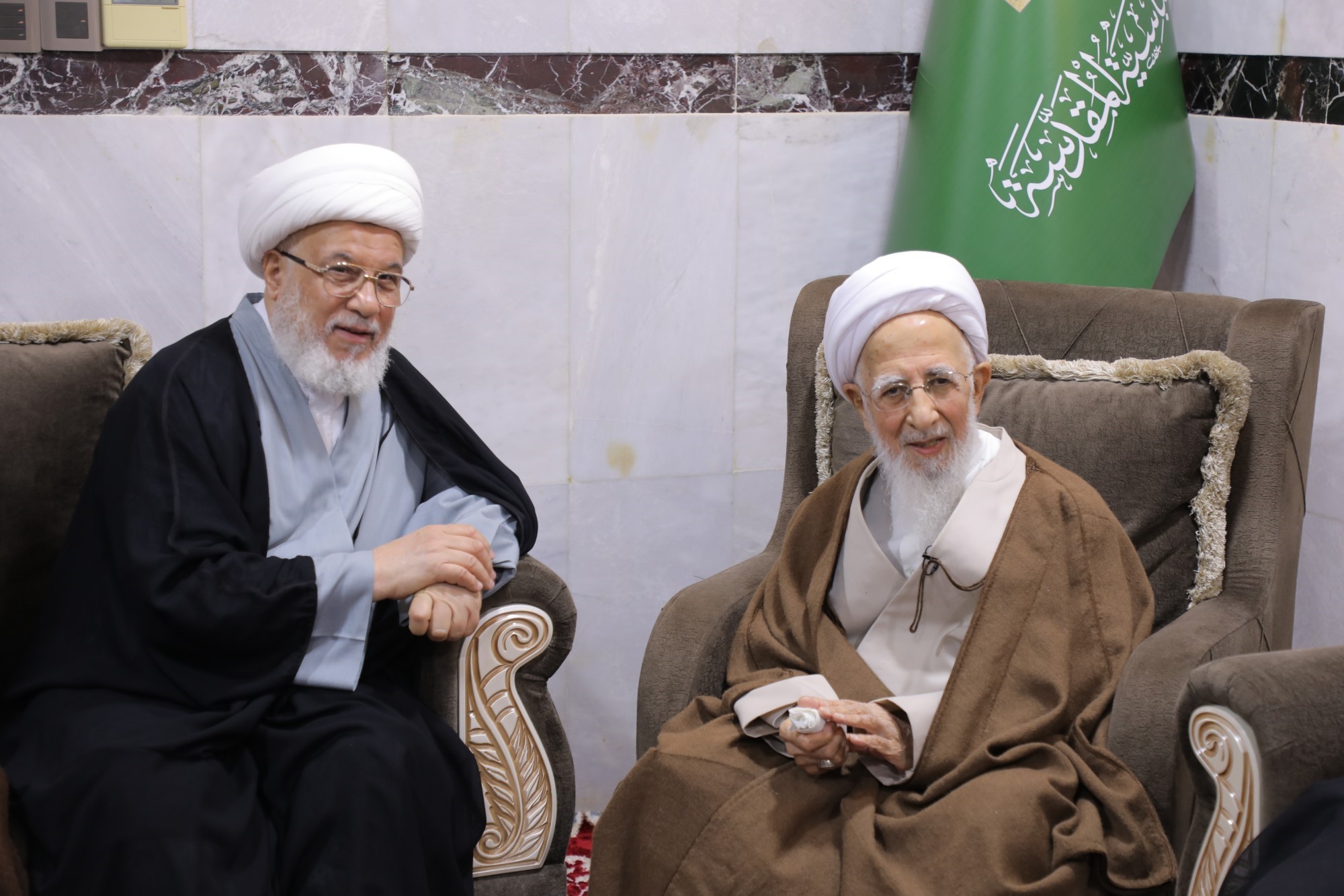در جریان این دیدارها، پرچم متبرک گنبد مطهر حضرت سیدالشهداء علیهالسلام و پرچم گنبد مطهر حضرت ابوالفضل العباس علیهالسلام به محضر حضرت آیتالله العظمی جوادی آملی اهدا شد.